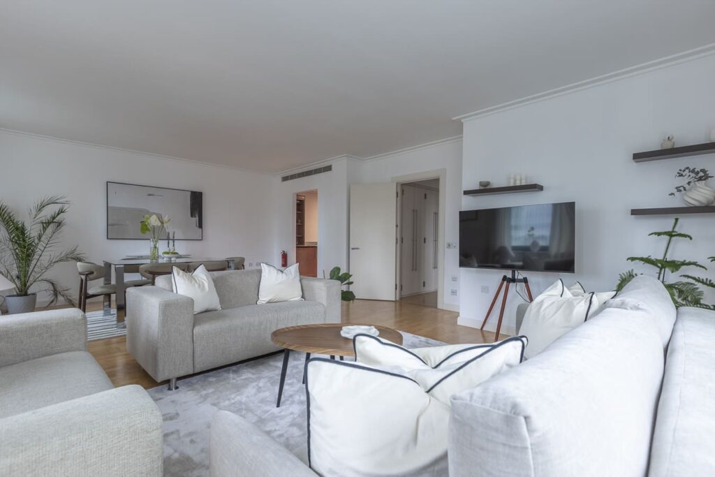Indulge in elevated comfort within our Spacious Modern Apartment, thoughtfully designed for both relaxation and style. With an open-plan living, this apartment features two beautifully appointed bedrooms, including an extra-large and a large double bed, ideal for unwinding after a busy day. Admire panoramic lake and city views from your private balcony, perfect for morning coffee or evening relaxation. The fully equipped kitchen offers high-end appliances for convenient meal prep, while the sleek, modern bathroom provides a spa-like atmosphere with premium amenities. Perfect for business and leisure stays alike, this residence combines elegant design with functional living to make your experience truly memorable.